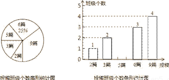 今年是第39个植树节,我们提出了“追求绿色时尚,走向绿色文明”的倡议.某校为积极响应这一倡议,立即在八、九年级开展征文活动,校团委对这两个年级各班内的投稿情况进行统计,并制成了如图所示的两幅不完整的统计图.