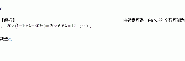 在一个不透明的布袋中,红色、黑色、白色的球共有20个,除颜色外,形状、大小、质地等完全相同,小明通过大量摸球实验后发现摸到红色、黑色球的频率分别稳定在10%和30%,则口袋中白色球的个数很可能是( )个.