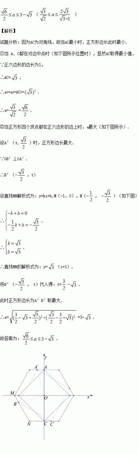 分别在边长为1的正六边形一组平行的对边上,另外两个顶点