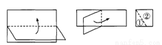 将一张矩形纸片对折(如图),然后沿着图中的虚线剪下,得到①、②两部分,将①展开后得到的平面图形是 ( )