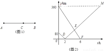 如图1所示,在A,B两地之间有汽车站C,客车由A地驶往C站,货车由B地驶往A地.两车同时出发,匀速行驶.图2是客车、货车离C站的路程y1,y2(千米)与行驶时间x(小时)之间的函数图象.