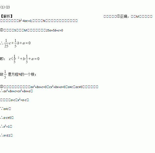 有两个一元二次方程,M∶ax2+bx+c=0;N∶cx2+bx+a=0(其中a·c≠0,a≠c )则下列结论中,其中正确的是 ____.(填序号)