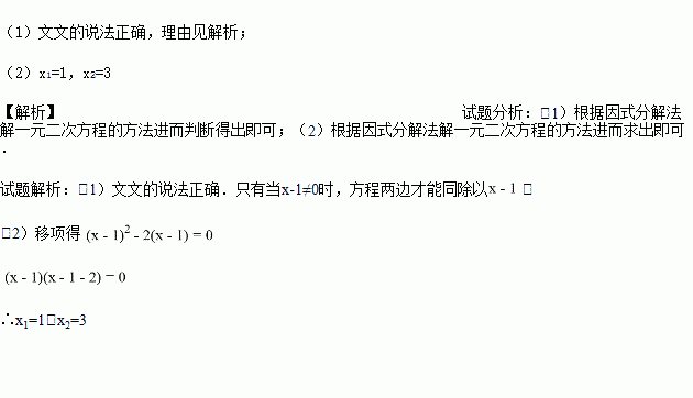 (1)文文的说法对吗?请说明理由;