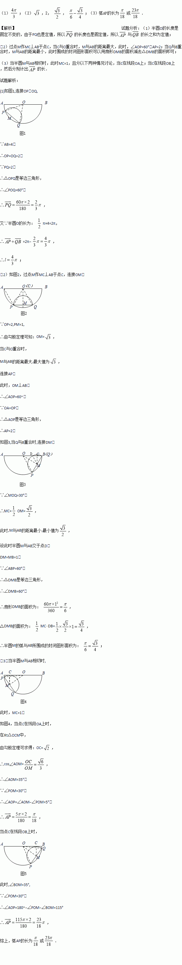 (3)当半圆M与AB相切时,求弧AP的长.