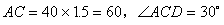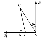 如图,一艘货轮从港口A出发,以每小时40千米的速度沿北偏西30°方向航行,1.5小时后因故障停在海中C处,救援艇从位于港口A的正西方向且距港口A20千米的B地立即出发,以每小时60千米的速度向C处驶去,这样救援艇大约用多少分钟到达C处。