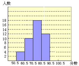 某班50名同学进行数学测验,将所得成绩(得分取整数,最低分为50分)进行整理后分成五组,并绘成统计图(如图)。请结合统计图提供的信息,回答下列问题。
