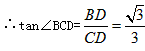 如图,在Rt△ABC中,∠ACB=90°,CD⊥AB于D,若BD:AD=1:3,求tan∠BCD的值。