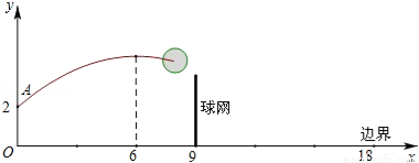 如图,排球运动员站在点O处练习发球,将球从O点正上方2m的A处发出,把球看成点,其运行的高度y(m)与运行的水平距离x(m)满足关系式y=a(x﹣6)2+h.已知球网与O点的水平距离为9m,高度为2.43m,球场的边界距O点的水平距离为18m.