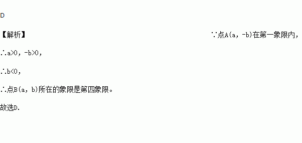 在平面直角坐标系中,若点A(a,﹣b)在第一象限内,则点B(a,b)所在的象限是( )