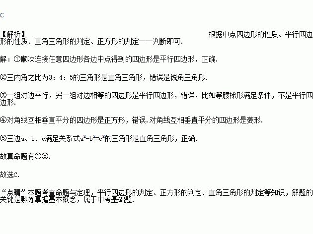 ①顺次连接任意四边形各边中点得到的四边形是平行四边形;