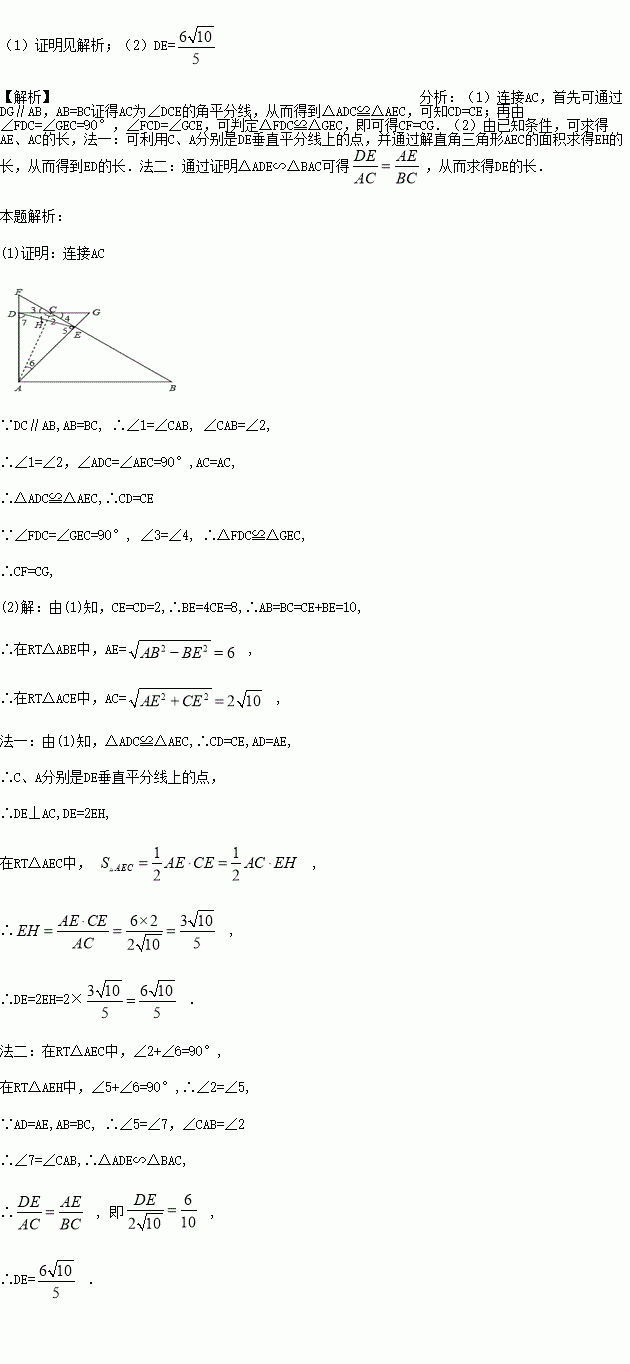 (2)连接DE,若BE=4CE,CD=2求DE的长.