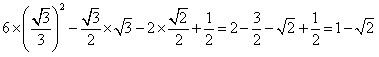 计算:6tan230°-cos30°·tan60°-2sin45°+cos60°。