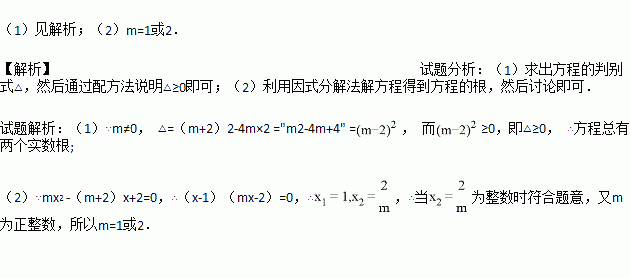 已知关于x的方程mx2 -(m+2)x+2=0(m≠0).
