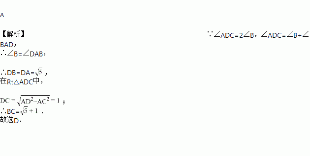 如图,在△ABC中,∠C=90°,AC=2,点D在BC上,∠ADC=2∠B,AD=