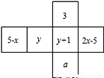 右图是一个正方体的展开图,标注了字母“a”的面是正方体的正面.如果正方体相对两个面上的式子的值相等,求x,y的值.