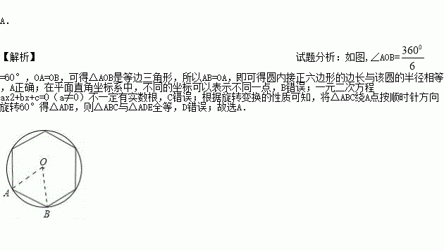 A.圆内接正六边形的边长与该圆的半径相等