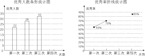 为了参加学校举行的传统文化知识竞赛,某班进行了四次模拟训练,将成绩优秀的人数和优秀率绘制成如下两个不完整的统计图: