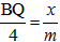 | (2)连接AC,设BP=x,则AP=m-x, ∵PQ∥AC, ∴△PBQ∽△ABC ∴ ∵DP⊥PQ, ∴∠APD+∠BPQ=90°, ∵∠APD+∠ADP=90°,∠BPQ+∠PQB=90°, ∴∠APD=∠BQP, ∴△APD∽△BQP, ∴ ①②联立得,BQ= |