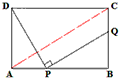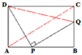 | (3)连接DQ,设AP=x,由(1)知 在Rt△APD中,DP2=AD2+AP2,即DP2=42+x2, 在Rt△PBC中,PC2=BC2+PB2,即DP2=42+(m-x)2。 若△PQD为等腰三角形,则42+x2=42+(m-x)2, 解得 ∵BQ= ∴CQ=4- ∴S四边形DPQC=S△DPQ+S△DCQ= |