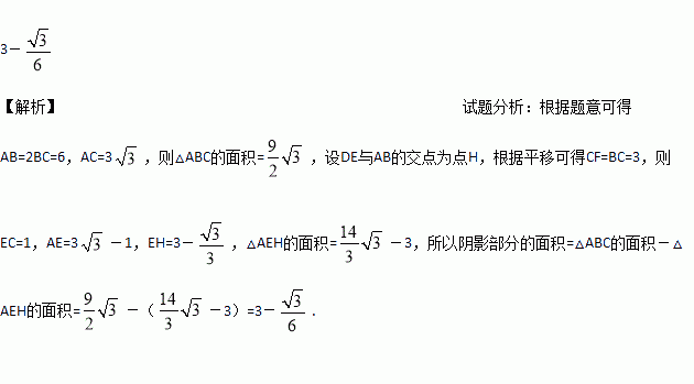 已知一副直角三角板如图放置,其中BC=3,EF=4,把30°的三角板向右平移,使顶点B落在45°的三角板的斜边DF上,则两个三角板重叠部分(阴影部分)的面积为 .
