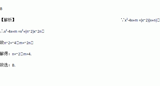 x2-4x+m=(x-2)(x+n),则 ( )