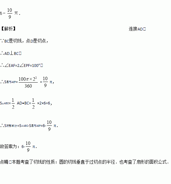 上的一点,且∠EPF=50°,则图中阴影部分的面积是_____________________.