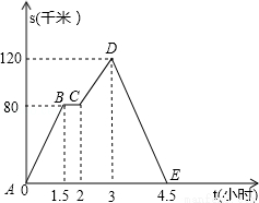 (1)汽车在DE段行驶了 小时;
