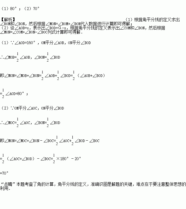已知:∠AOD=160°,OB、OC、OM、ON是∠AOD内的射线,