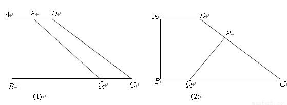 (3)是否存在t,使得P点在线段DC上,且PQ⊥DC(如图(2)所示)?若存在,求出此时t的值,若不存在,说明理由.![]()
