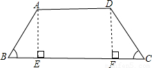 点评:解答本题的关键是注意掌握如果过上底的两个顶点分别作下底的两条高,可把等腰梯形分成矩形和两个全等的直角三角形.