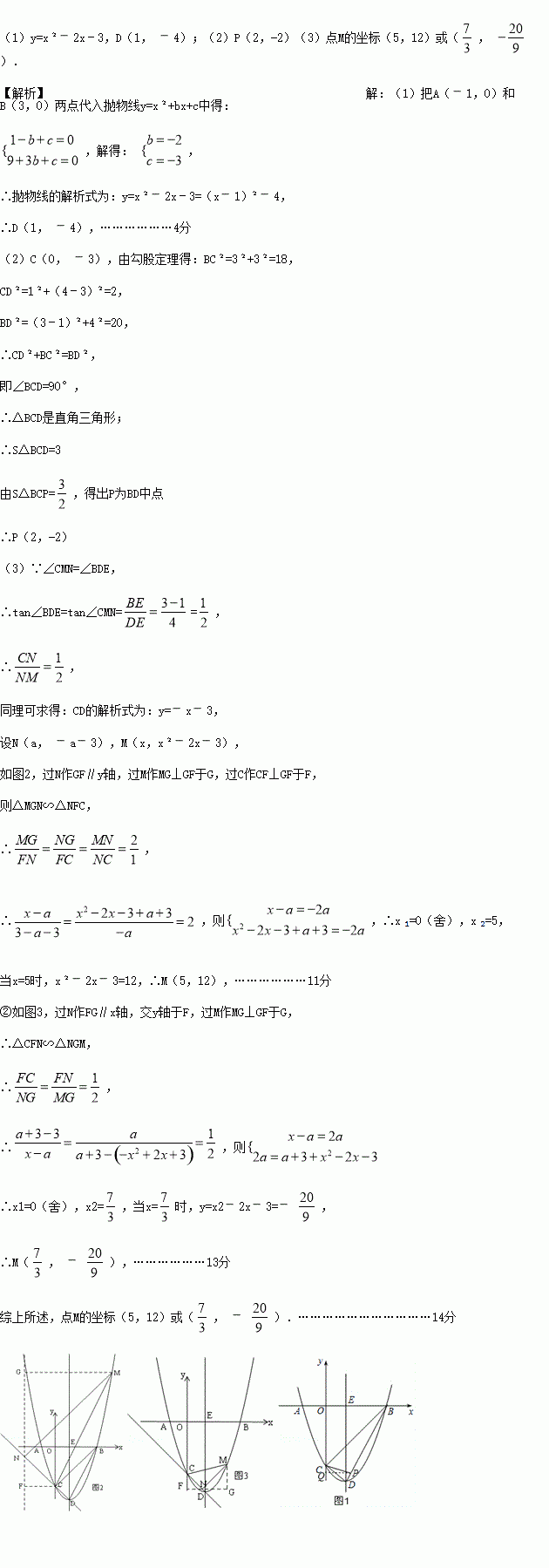 (3)点M为抛物线上一点,作MN⊥CD,交直线CD于点N,若∠CMN=∠BDE,请直接写出所有符合条件的点M的坐标.