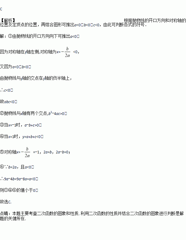 抛物线y=ax2+bx+c(a≠0)的图象如图所示,那么下面六个代数式:①abc;②b2-4ac;③a-b+c;④a+b+c;⑤2a-b;⑥9a-4b中,值小于0的有( ).