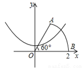 如图,以扇形OAB的顶点O为原点,半径OB所在的直线为x轴建立平面直角坐标系,点B的坐标为(2,0),扇形的圆心角是60°,若抛物线 y=x²+k与扇形OAB的边界总有两个公共点,则实数取值范围是