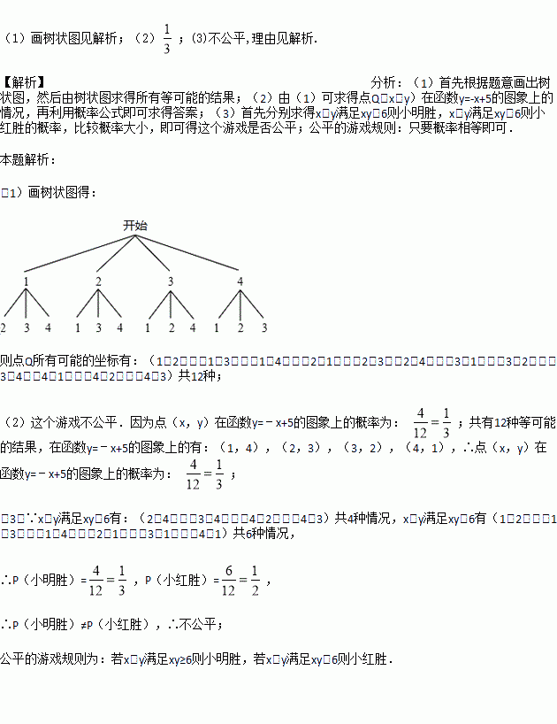 (3)小明和小红约定做一个游戏,其规则为:若x、y满足xy>6则小明胜,若x、y满足xy<6则小红胜,这个游戏公平吗?说明理由;若不公平,请写出公平的游戏规则.