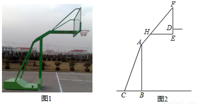 如图1,2分别是某款篮球架的实物图与示意图,已知底座BC=0.60米,底座BC与支架AC所成的角∠ACB=75°,支架AF的长为2.50米,篮板顶端F点到篮框D的距离FD=1.35米,篮板底部支架HE与支架AF所成的角∠FHE=60°,求篮框D到地面的距离(精确到0.01米)(参考数据:cos75°≈0.2588,sin75°≈0.9659,tan75°≈3.732,