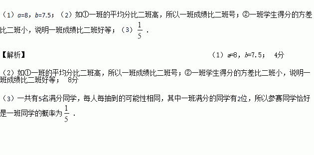 (3)若从这两班获满分的同学中随意抽1名同学参加“汉字听写大赛”,求参赛同学恰好是一班同学的概率.