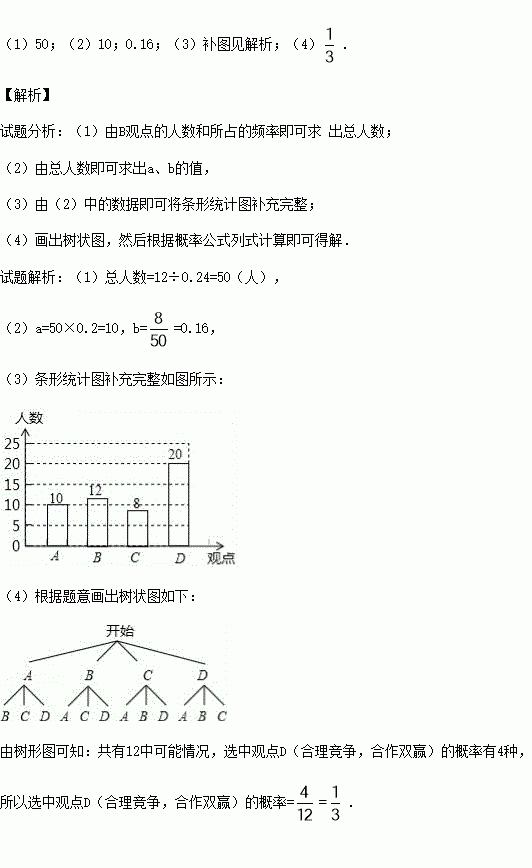 四个观点中任选两个作为演讲主题,请用列表或画树状图的方法求选中观点