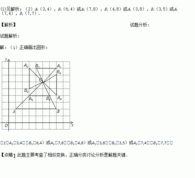 (1)请以图中的格点为顶点画出一个△A1B1C,使得△A1B1C ∽△ABC,且△A1B1C与△ABC的周长比为1:2;(每个小正方形的顶点为格点)