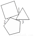 将正三角形、正四边形、正五边形按如图所示的位置摆放.如果∠3=32°,那么∠1与∠2的度数和为___________°.