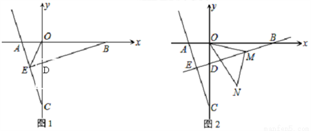 (2) 点B为x轴正半轴上一点,如图1,BE⊥AC于点E,交y轴于点D,连接OE,若OE平分∠AEB,求直线BE的解析式;