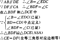 如图,在△ABC中,D是BC的中点,AB∥DE,DF∥CA,分别交AC、AB于E、F,求证:CE=DF