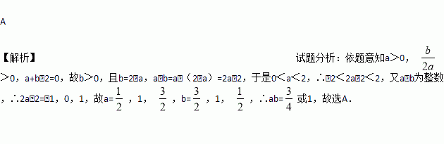 已知二次函数y=ax2-bx-2(a≠0)的图象的顶点在第四象限,且过点(-1,0),当a-b为整数时,ab的值为( )