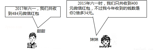 (2)2017年六一甜甜和她妹妹各收到了多少钱的微信红包?