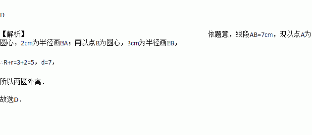已知线段AB=7cm.现以点A为圆心,2cm为半径画⊙A;再以点B为圆心,3cm为半径画⊙B,则⊙A和⊙B的位置关系是( )