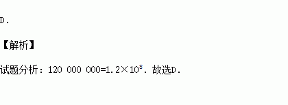 A.1.2×109 B.12×107 C.0.12×109 D.1.2×108