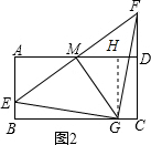 (2)过点G作GH⊥AD于H,推出四边ABGH为矩形,得到∠AME+∠AEM=90°,由于∠AME+∠GMH=90°等量代换得到∠AEM=∠GMH,推出△AEM≌△HMG(AAS),根据全等三角形的性质得到ME=MG,求得∠EGM=45°.根据全等三角形的性质得到ME=MF.即可得到结论;
