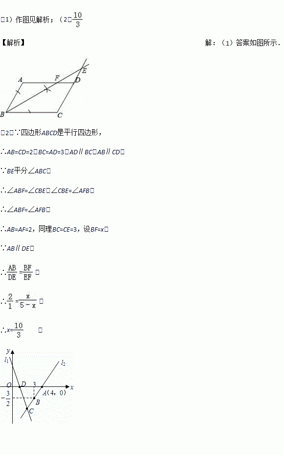 (1)用直尺和圆规作出∠ABC的平分线BE,BE交CD的延长线于点E,交AD于点F;(保留作图痕迹,不写作法)
