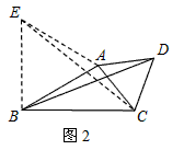 | £¨2£©Èçͼ2£¬ÒÔAΪ¶¥µãABΪ±ßÔÚ¡÷ABCÍâ×÷¡ÏBAE=60¡ã£¬²¢ÔÚAEÉÏÈ¡AE=AB£¬Á¬½ÓBEºÍCE£¬ ¡ß¡÷ACDÊǵȱßÈý½ÇÐΣ¬ ¡àAD=AC£¬¡ÏDAC=60¡ã£¬ ¡ß¡ÏBAE=60¡ã£¬ ¡à¡ÏDAC+¡ÏBAC=¡ÏBAE+¡ÏBAC£¬ ¼´¡ÏEAC=¡ÏBAD£¬ ¡à¡÷EAC¡Õ¡÷BAD£¬ ¡àEC=BD£¬ ¡ß¡ÏBAE=60¡ã£¬AE=AB=3£¬ ¡à¡÷AEBÊǵȱßÈý½ÇÐΣ¬ ¡à¡ÏEBA=60¡ã£¬EB=3£¬ ¡ß¡ÏABC=30¡ã£¬ ¡à¡ÏEBC=90¡ã£¬ ¡ß¡ÏEBC=90¡ã£¬EB=3£¬BC=4£¬ ¡àEC=5£¬ ¡àBD=5£» |