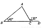 如图,在△ABC中,D是BC延长线上一点,∠B=40°,∠ACD=120°,则∠A等于( )