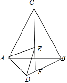 分析 (1)根据等边三角形的性质得到AC=AB,∠EAD=∠CAB=60°,由点D、E分别是边AB、AC的中点,得到AE=AD,根据旋转的性质得到∠EAC=∠BAD,根据全等三角形的性质得到∠ACE=∠ABD,推出A,B,C,F四点共圆,根据圆周角定理即可得到结论;